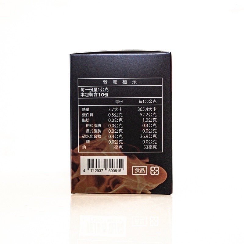 成分:固態發酵牛樟芝菌絲體、大豆胜肽、植物多醣體(β-葡聚醣+枸己多醣)、左旋-精氨酸、D-核醣、明膠
