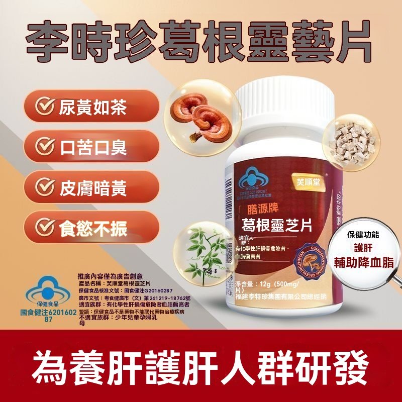 雅博人葛根靈芝片護肝片養肝廣膳源牌輔助降血脂熬夜喝酒口苦口臭