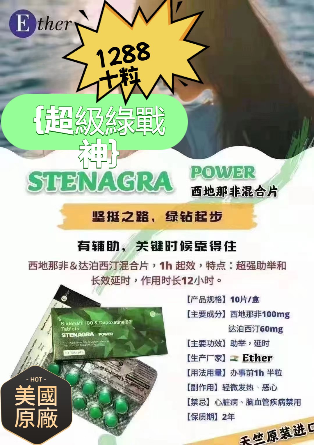 NT$ 1.188 – NT$ 2.888Price range: NT$ 1.188 through NT$ 2.888超級威爾剛雙效Stenagra Super power藍鑽必利勁威猛雙效片10粒/盒|西地那非100mg(威而鋼)+達泊西汀100mg(必利勁)–10粒/盒】持久堅挺+綠色萃取無副作用